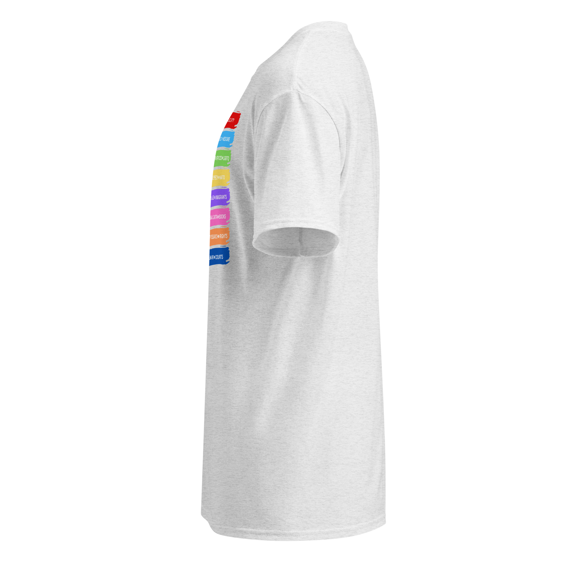 Show your support for the Hands Off List movement with our protest t-shirt! Crafted from a soft blend of 50% cotton and 50% polyester, this t-shirt is both comfortable and stylish. The DryBlend® moisture-management fabric ensures you stay dry and fresh throughout the day. The modern classic fit and rib collar in classic width give this t-shirt a timeless look. Plus, the taped neck and shoulders add extra comfort and durability. Say goodbye to annoying labels with the tear-away label feature, perfect for those with sensitive skin. Make a statement with our Hands Off List protest t-shirt.