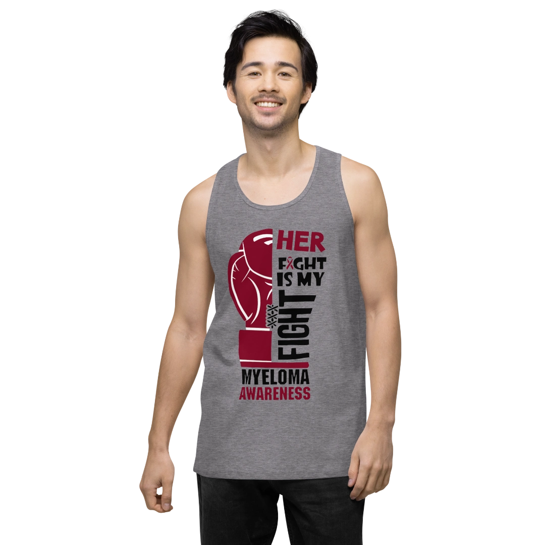 Are you ready to show your support for Myeloma patients? Introducing our exclusive Mens Tank Top from Myeloma For Life™/Shop Wrenée™! Made from 100% combed ring-spun cotton, this lightweight tank provides optimum comfort and breathability. The soft-washed and tight-knit mid/heavyweight material ensures a relaxed fit and extra soft surface against your skin. With the sleeveless drop arm design, you can move freely and comfortably all day long. And the best part? Your purchase contributes towards helping Myeloma patients in their fight. Join us in spreading the message of "Her Fight Is My Fight" with this trendy and meaningful tank top.