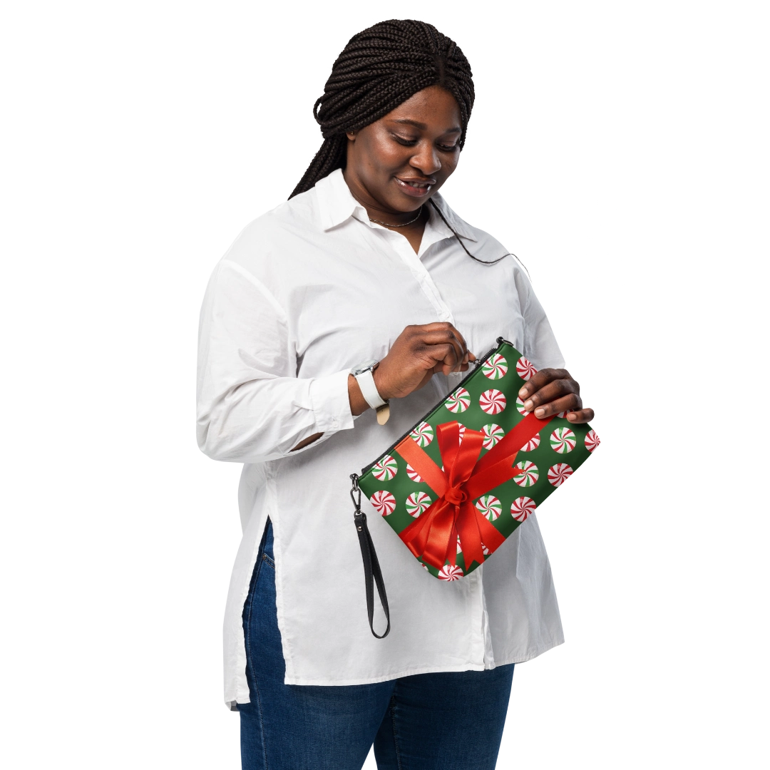 Unwrap the perfect accessory this holiday season with the "My Gift" cross body bag by Shop Wrenee™. Featuring a chic faux leather construction, this bag showcases the charm of a beautifully wrapped Christmas gift, including a hassle-free bow. The 11" × 8" × 1.5" dimensions provide ample storage, while the zip-top closure ensures your belongings stay secure. With adjustable and removable wrist and shoulder straps, you can effortlessly switch up your look. Combine style and practicality with this must-have piece for the holiday season.
