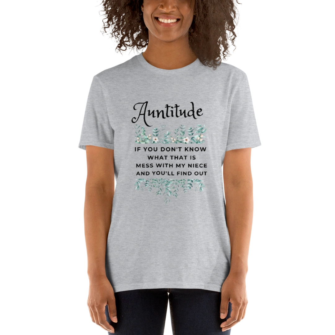 If you've got an aunt with an attitude, we've got the perfect shirt for her! Our Auntitude T-shirt is made with 100% ring-spun cotton, so it's soft and durable. The Sport Grey option is even better - made with 90% ring-spun cotton and 10% polyester, it's the ultimate in comfort and style. Whether you're buying it for yourself or your favorite aunt, this shirt is a must-have for anyone with a sassy, fun-loving spirit.